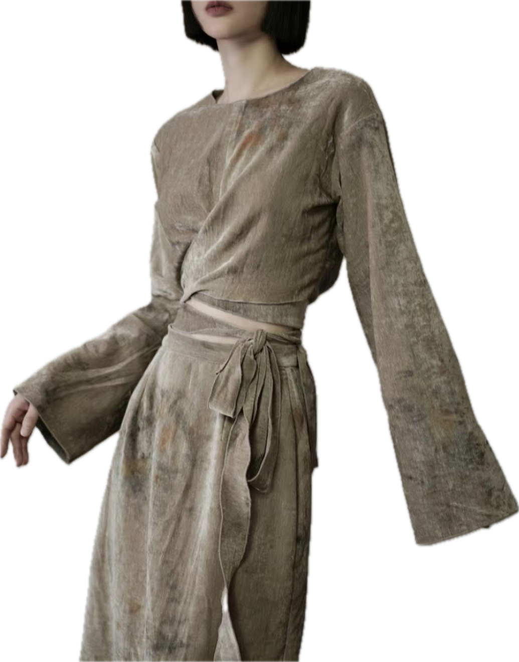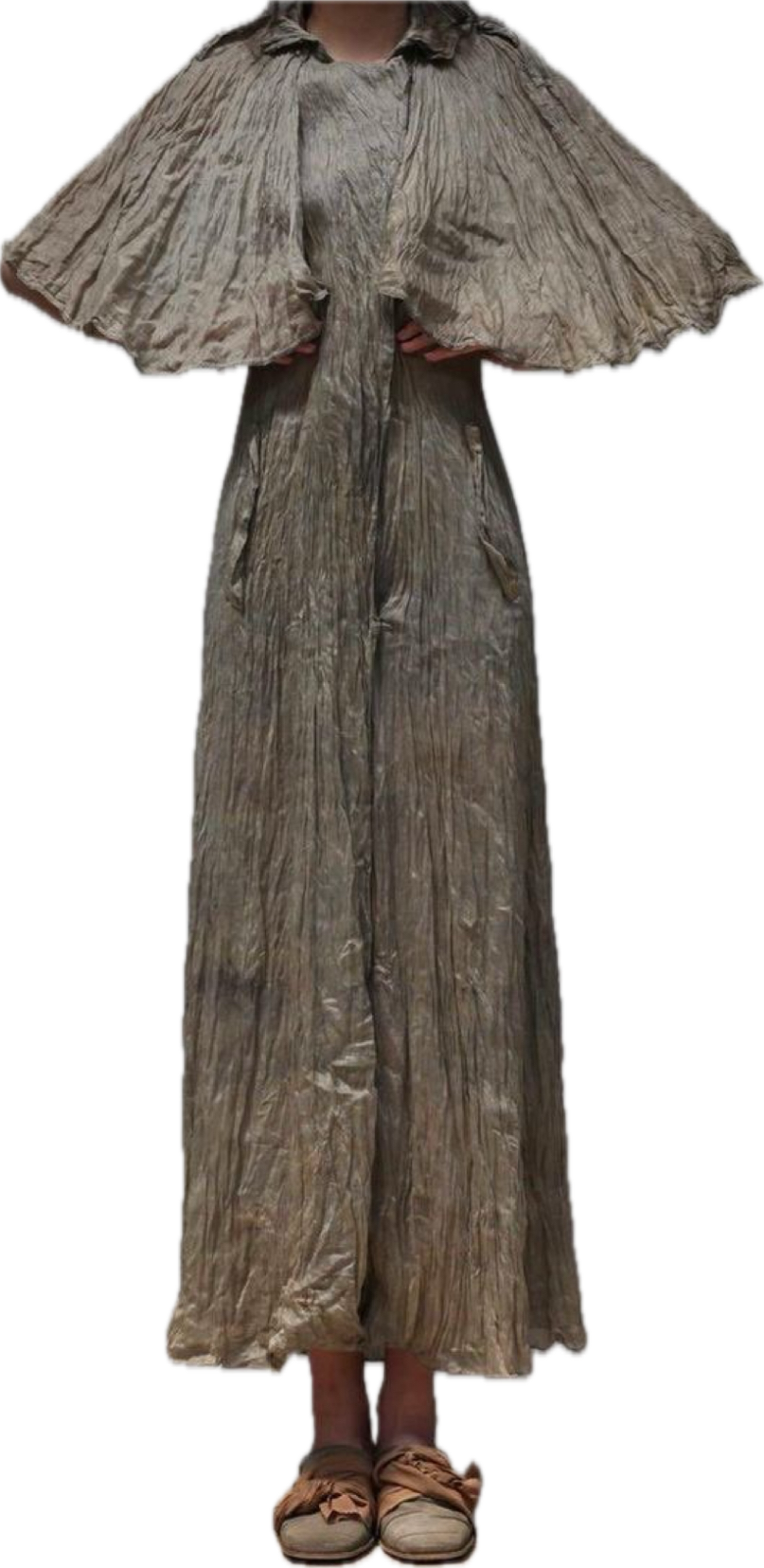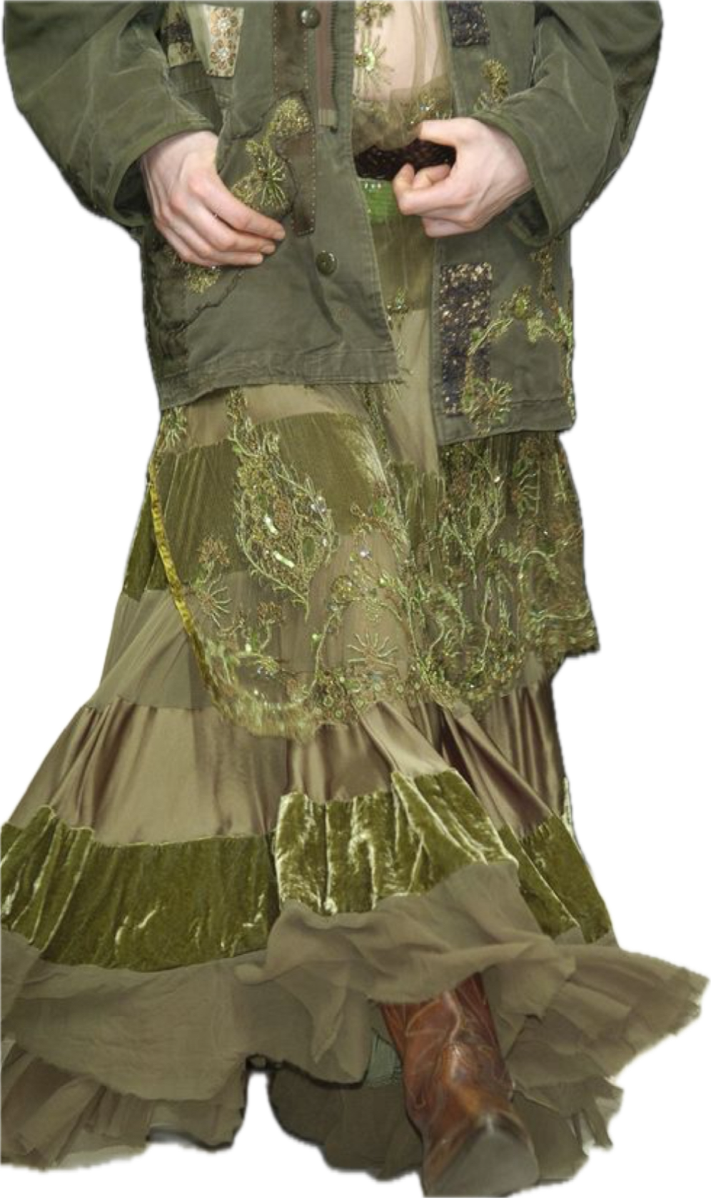 Dress as something the rain would reveal. Think textures that feel born from earth after a storm: mossy greens, mist-washed silks, raw organic fibers, and garments with movement like drifting clouds or rising steam. Layered sheers, weathered neutrals, soft metallics, and shapes that echo erosion, bloom, or rainfall.